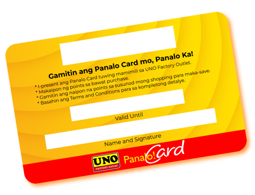 The Uno Panalo Card is our way of thanking loyal customers. Every time you shop at Uno Factory Outlet branches and use your card, you earn points that can be redeemed for discounts and special rewards — making your shopping experience even more rewarding!